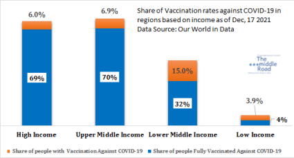 The Omicron variant is rapidly advancing globally, The middle Road is sharing key policy enablers to fight COVID-19. Between 14 and 15 December 2021, 502 additional cases of the Omicron B.1.1.529 lineage variant were reported in the European Union and European Economic Area (EU/EEA) by the European Centre for Disease Prevention and Control. The United States and the United Kingdom have seen a surge in the COVID-19 cases due to the new variant. Pfizer/BioNTech’s recent announcement that three doses of its vaccine neutralize the Omicron B.1.1.529 lineage variant is positive news in extrapolating booster doses as measures to safeguard against the new variant. Recently, the United Kingdom, Turkey, and South Korea reduced the time lag for fully vaccinated people to take booster doses from six to three months. The United Kingdom reduced the booster dose to three months on the onset of Omicron. Boosters were introduced in the UK in September with either BNT162b2 or a half dose (50µg) of mRNA-1273 for adults over 50 years and those in risk groups, further expanded to all adults. Although no scientific consensus exists on this issue, WHO guidelines to immunize the vulnerable population first is a judicious step. At the same time, countries with significant populations could prioritize booster doses especially for those suffering from underlying conditions like non-communicable diseases and frontline health workers by offering doses if the vulnerable population has been fully vaccinated.